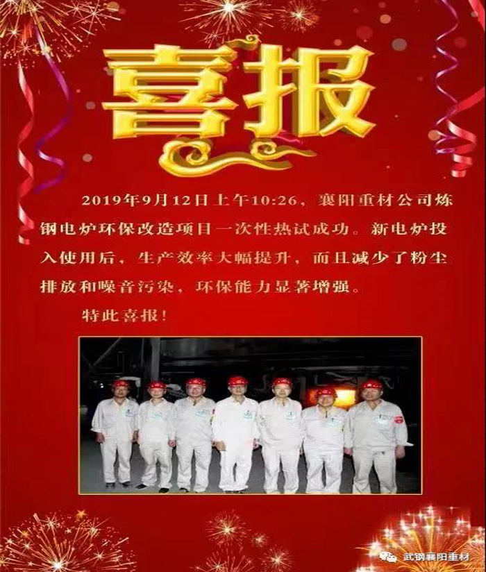 西安桃園冶金設(shè)備工程有限公司承建武鋼集團(tuán)某子公司的煉鋼節(jié)能環(huán)保改造工程中的電爐(50t EAF)改造項(xiàng)目。2019年9月12日上午10:26,現(xiàn)場(chǎng)業(yè)主相關(guān)領(lǐng)導(dǎo)和我公司駐現(xiàn)場(chǎng)代表共同見(jiàn)證了50t EAF一次性熱試成功。這標(biāo)志著這項(xiàng)投資2000 多萬(wàn)的煉鋼節(jié)能環(huán)保改造項(xiàng)目圓滿成功!